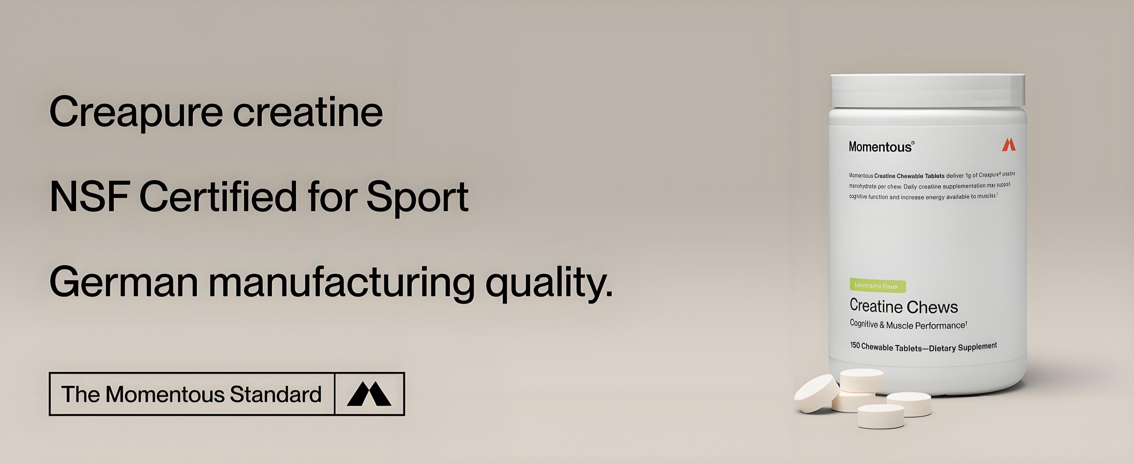 Creatine is one of the most studied and proven performance supplements on the planet—and now, it’s available in a convenient, NSF Certified chewable form made to The Momentous Standard™.